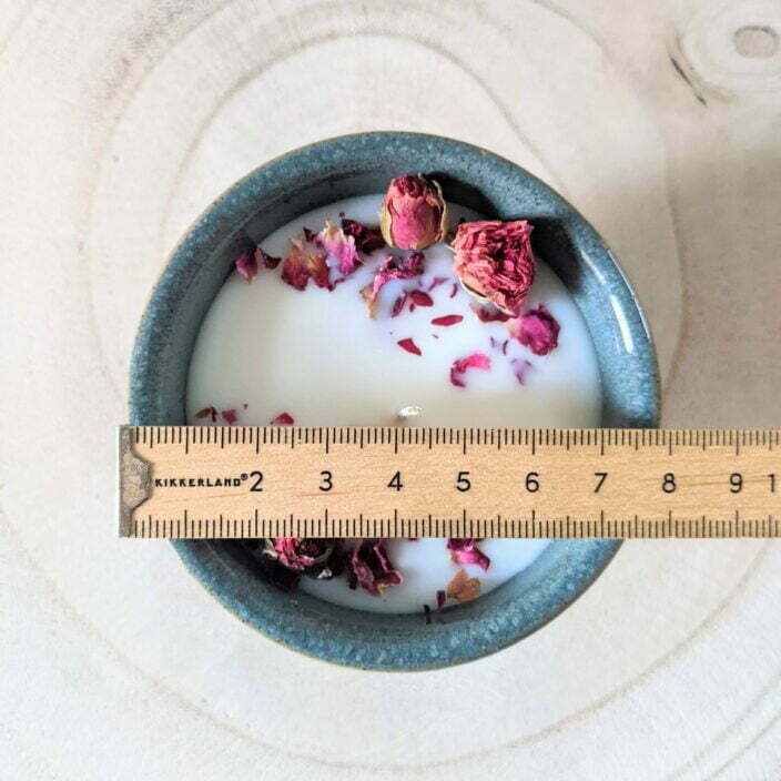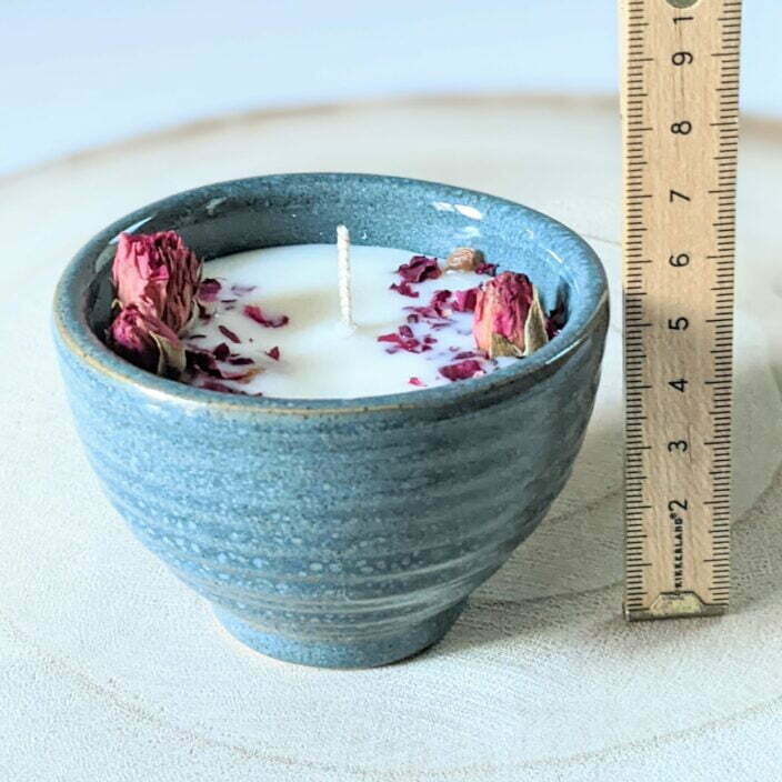 Zoé est une petite bougie parfumée artisanale pour décorer et embellir votre intérieur. Elle viendra embaumer avec son doux parfum de rose, créant une ambiance chaleureuse et conviviale dans vos pièces. Elle est ornée par mes soins de fleurs séchées. La bougie est coulée dans un réceptacle en céramique de couleur vert bleu, réutilisable. Mes bougies sont composées de cire de soja d’origine 100% naturelle, non OGM et biodégradable. Sa mèche en coton bio assure une combustion propre et saine. Un cadeau raffiné et écologique, parfait pour embellir votre intérieur ou surprendre vos proches avec élégance.