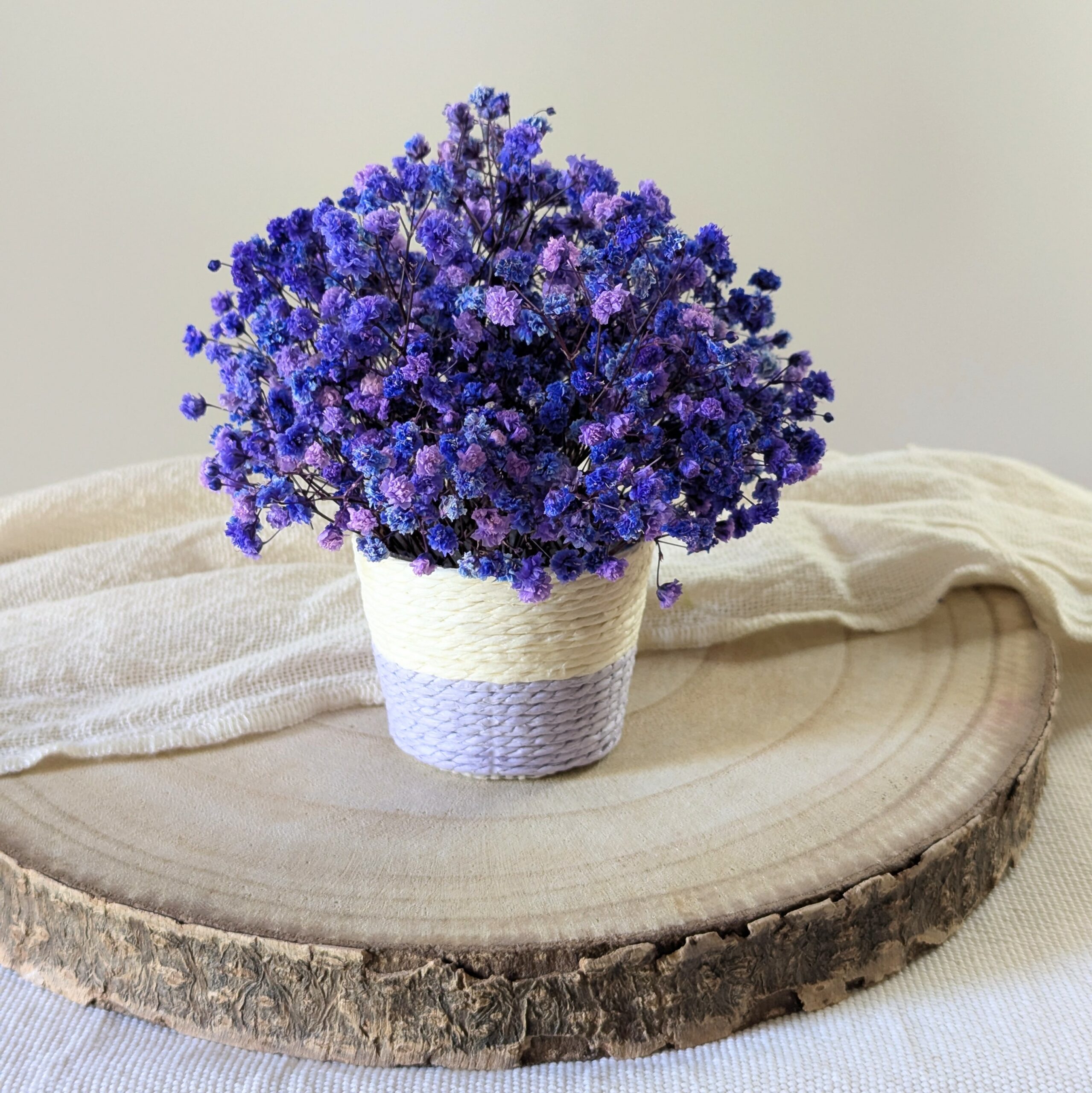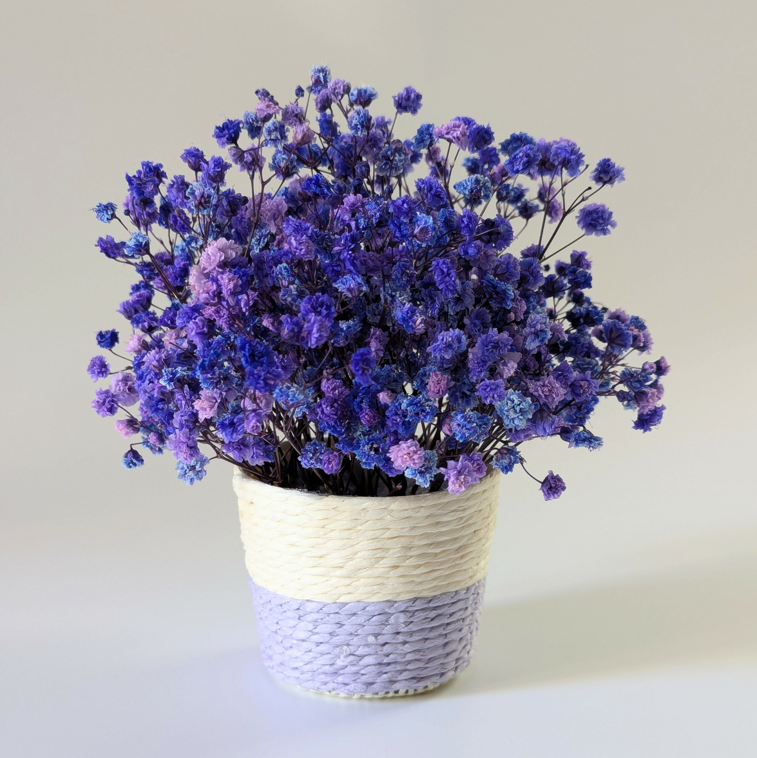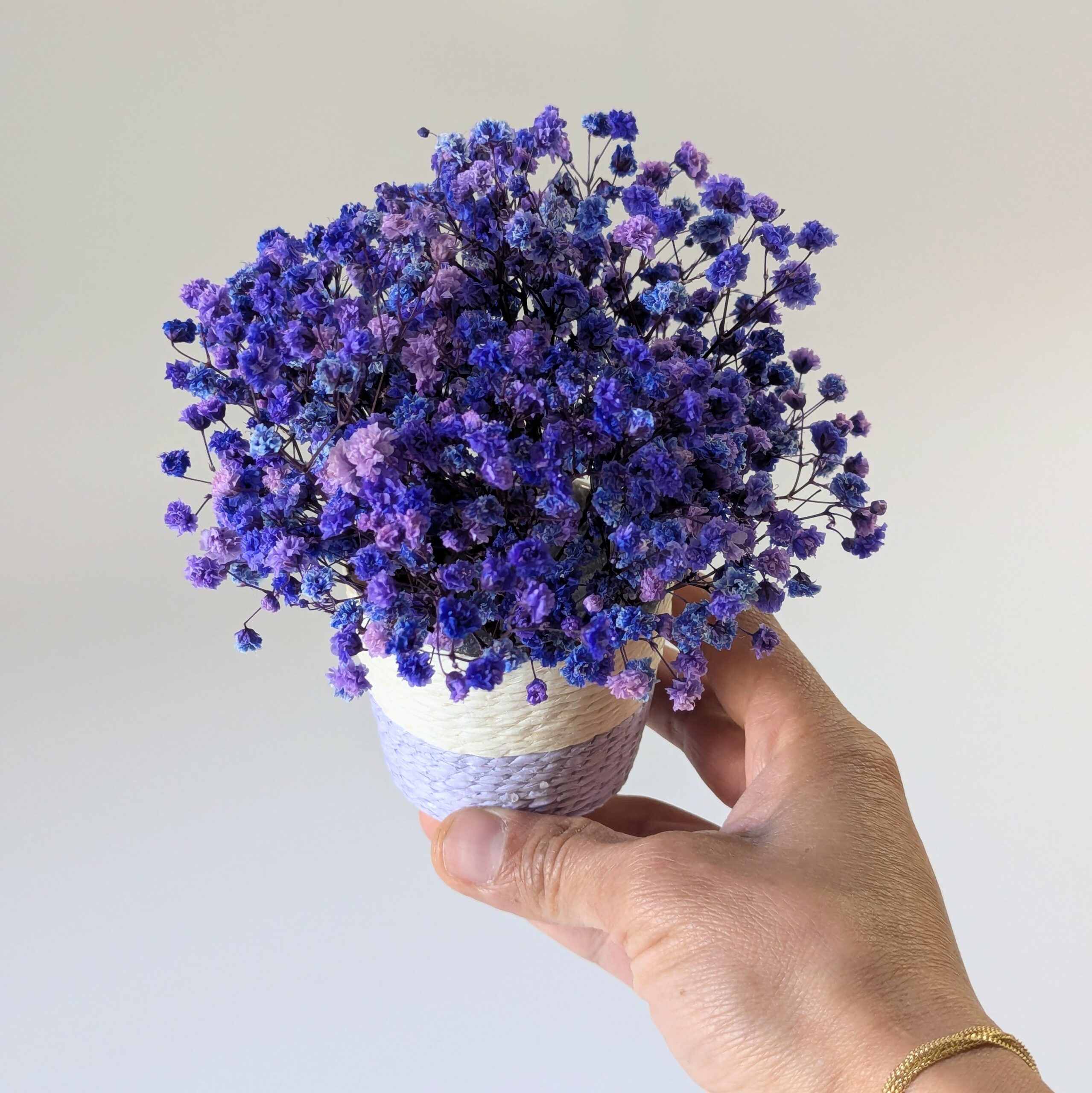 Apportez une touche minimaliste et colorée à vos espaces avec le mini panier Léna, sublimé par du gypsophile stabilisée violet et bleu. Chaque panier est fait main dans mon atelier bordelais, combinant artisanat raffiné et matériaux de qualité pour une décoration durable et élégante. Parfait comme élément décoratif sur une table, une étagère ou un bureau, Léna apporte modernité et vivacité à votre intérieur. Léger, maniable et poétique, il s’intègre facilement à un style minimaliste, contemporain ou scandinave, pour un effet chic et lumineux. Offrez à votre espace un détail coloré et sophistiqué, qui attire le regard tout en restant discret et harmonieux.