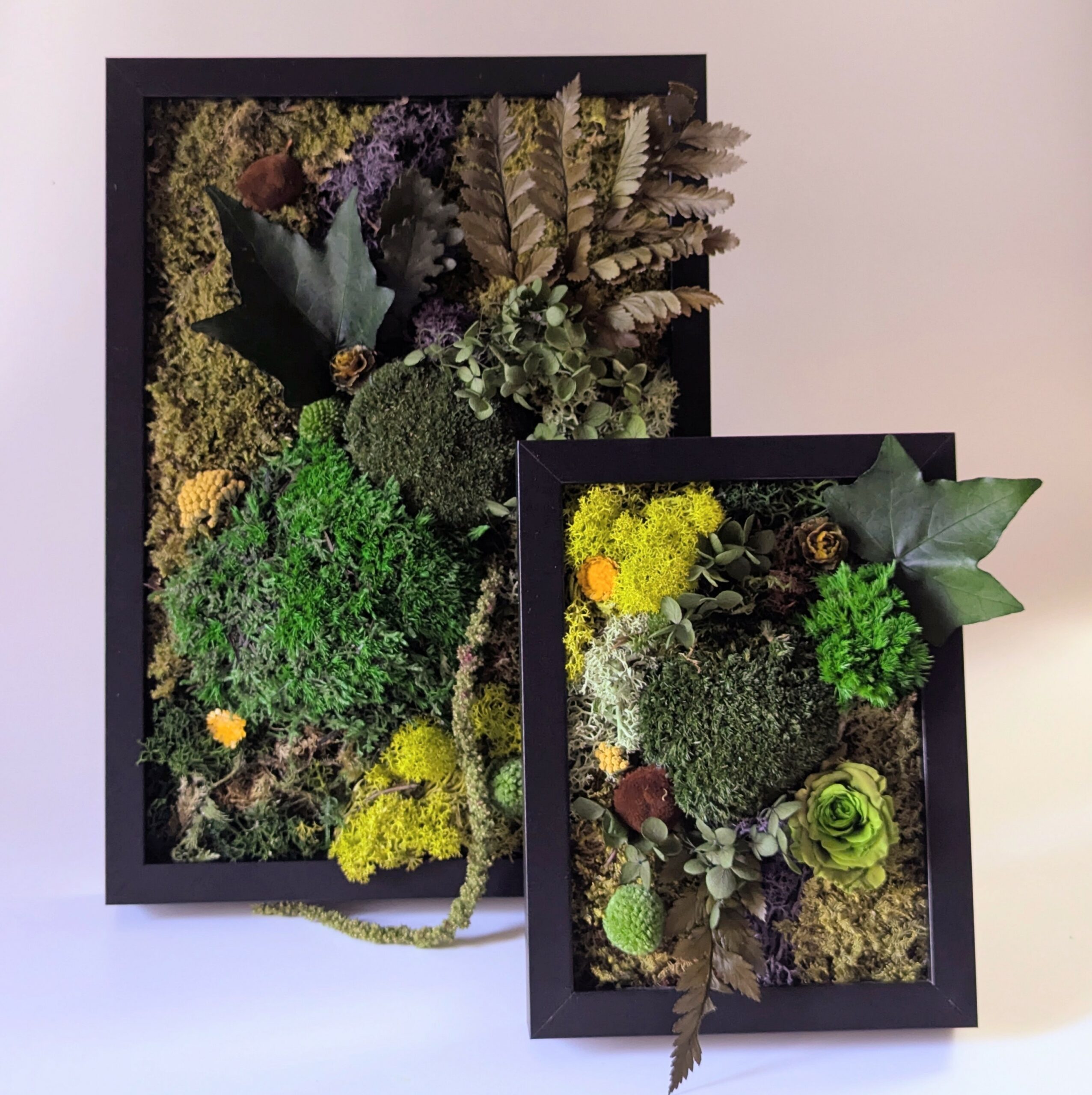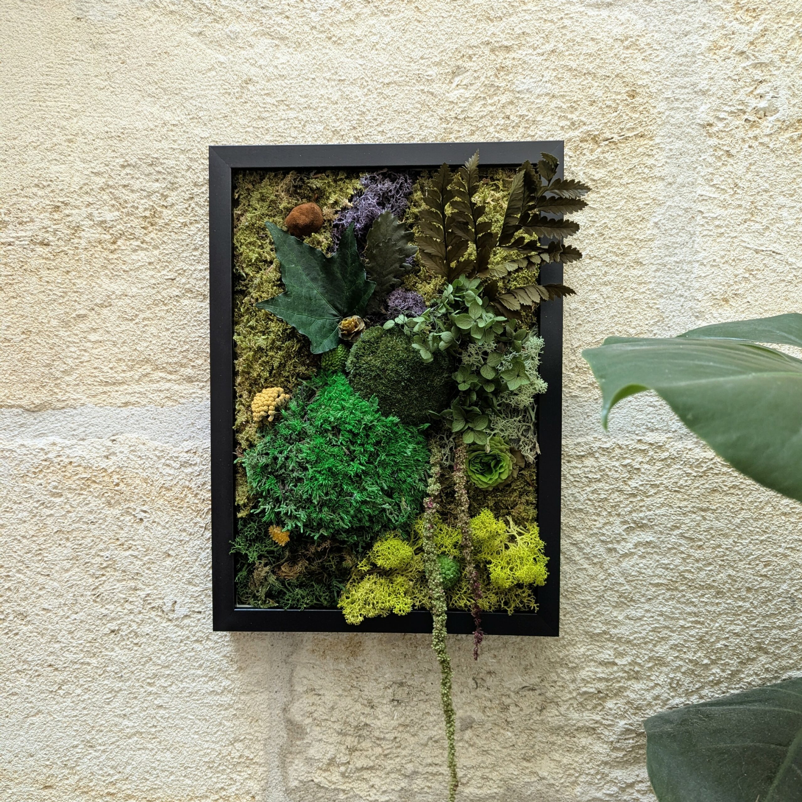 Offrez à votre intérieur une note de verdure raffinée avec ce tableau végétal stabilisé. Conçu à partir de mousses, lichens et feuillages naturels, il conserve son éclat et sa fraîcheur sans aucun entretien. Pas besoin d’eau, de lumière ni de soins particuliers : la beauté du végétal reste intacte au fil des années. Chaque composition est réalisée à la main dans mon atelier bordelais, ce qui en fait une pièce unique et authentique. Le cadre en bois met en valeur la richesse des textures et les nuances de vert, apportant une atmosphère chaleureuse, apaisante et moderne à votre décoration. Ce tableau végétal mural trouve facilement sa place dans un salon, une entrée, une chambre ou un bureau. Il est également une excellente idée cadeau pour les amoureux de la nature, de la décoration durable et des ambiances zen. Un accessoire déco élégant, écologique et intemporel, qui transforme vos murs en véritable écrin de verdure.